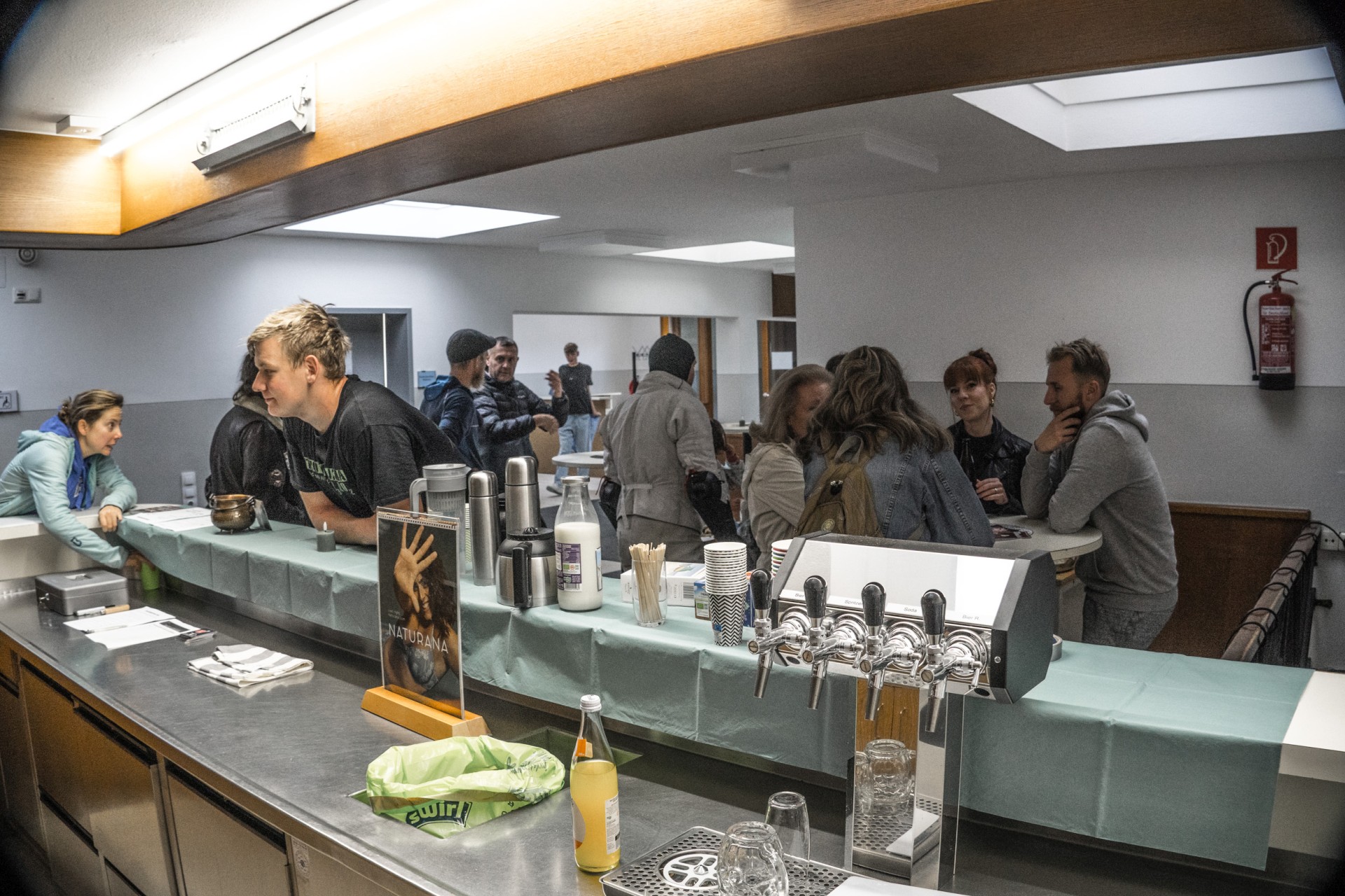 Entspanne dich an der Bar mit Brötchen, Getränken, Kaffee und Kuchen.